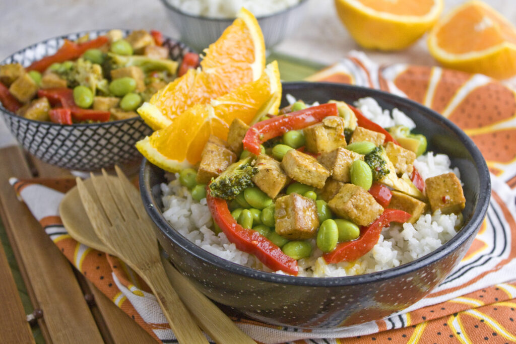 Kaum zu glauben, dass es mal eine Zeit gab, in der ich Tofu nicht mochte. Wie aus einem anderen Leben die Vorstellung. Aber ich hatte damals auch nie so leckeren Tofu wie hier in der Orangen-Tofu-Pfanne gegessen. Das hätte mich bestimmt schneller bekehrt. Auch wenn das Highlight die Edamame sind…